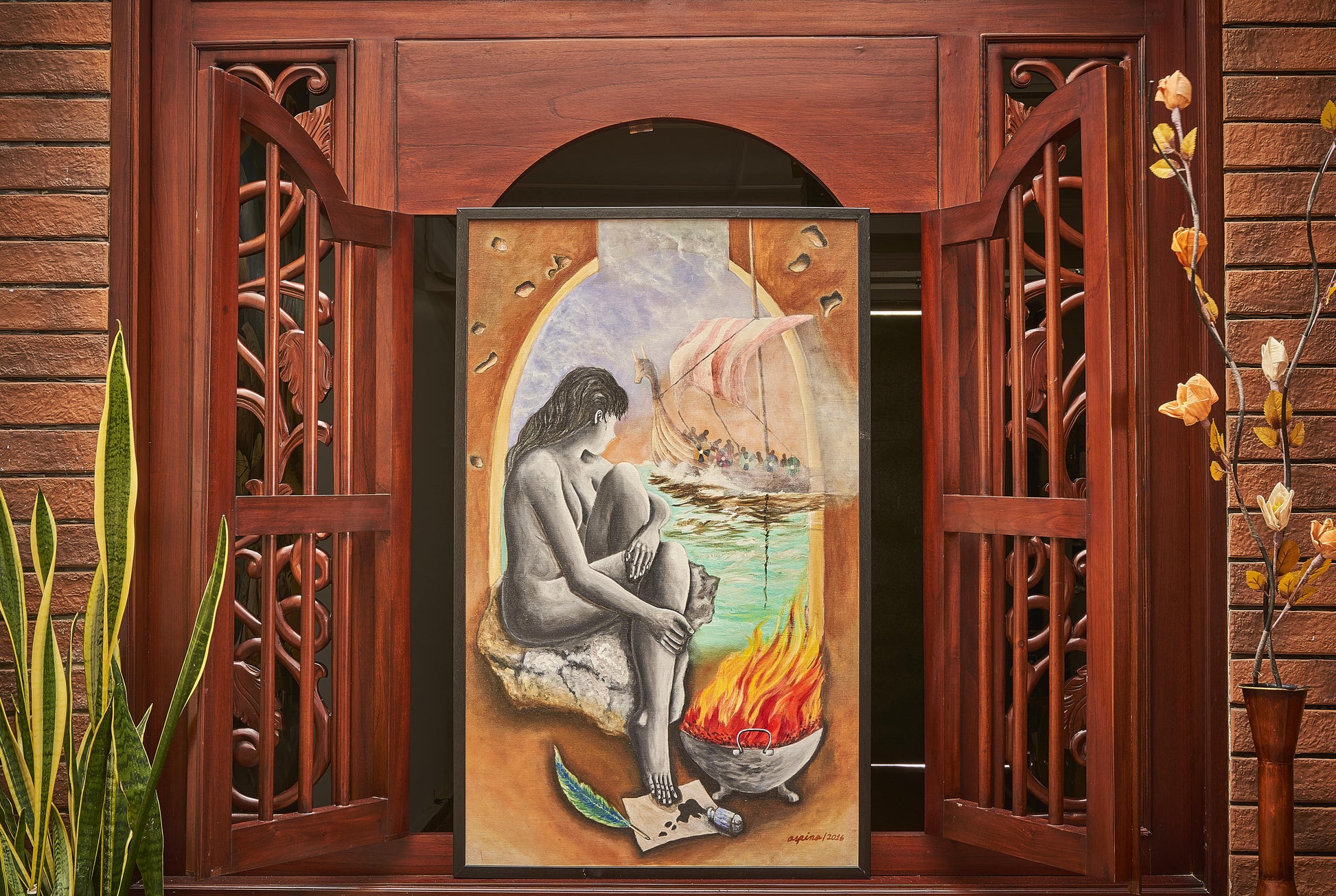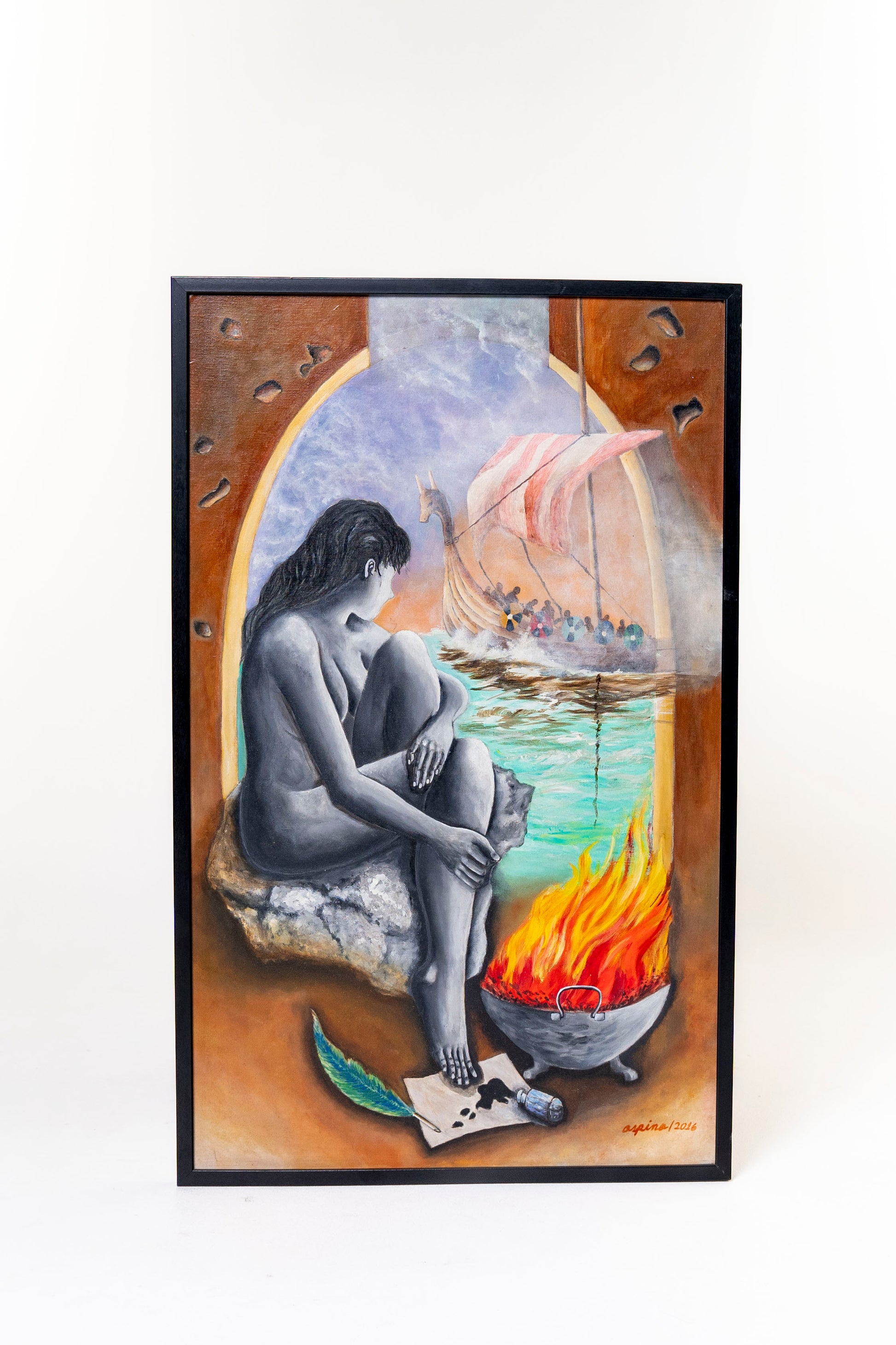 Acrílico sobre retablo. Medidas: 66 cms de ancho por 106 cms de alto.